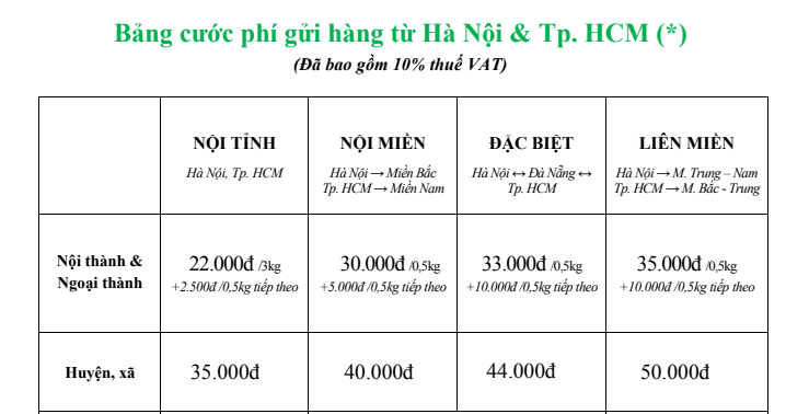 Bảng giá vận chuyển áp dụng theo đơn vị vận chuyển này:
